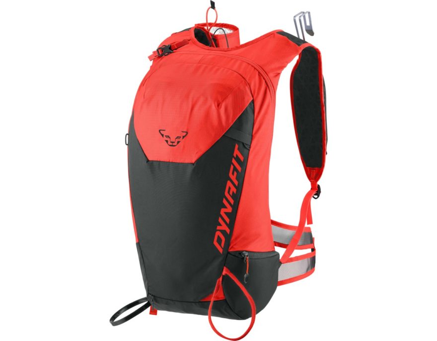 Součástí výbavy patří i osvědčený systém DYNAFIT pro nošení lyží s háčkem a poutkem, odnímatelný držák láhve, stejně jako praktická voděodolná kapsa uvnitř hlavní komory pro předměty, které musí zůstat suché. Nesmí chybět ani možnost připevnění helmy, cepínu a nastavitelný hrudní popruh.