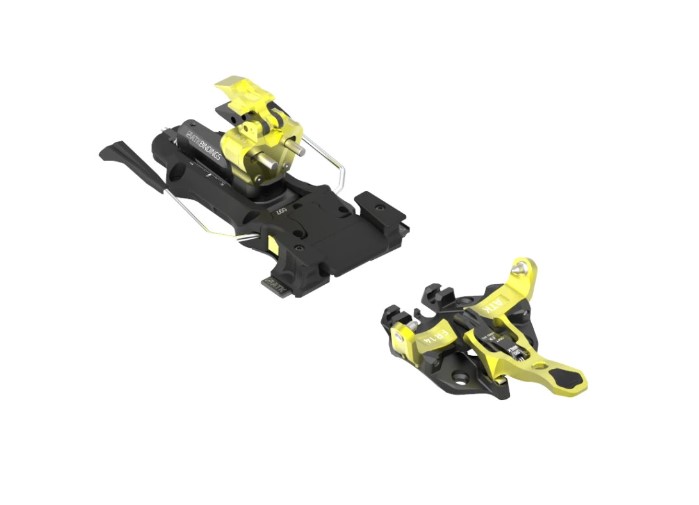 Brzda umístěná nově na patě vázání je neuvěřitelně lehká a snadno ovladatelná. Mezi pozicemi stoupání a sjezd (Uphill a Downhill) je možné přepínat pomocí tlačítka umístěného na patě vázaní.