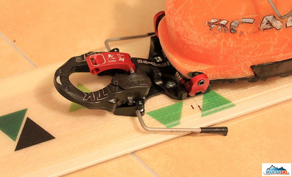 Merania ukázali jednu zaujímavú vec: jednotlivé stúpacie stupne majú výrazne menší uhol ako pri Dynafit viazaniach. Jednoducho povedané, ak sa otočí pätka ATK do polohy s najvyšším stupňom pod pätou, dosiahnutý uhol je len o trošku väčší, ako keď sa Dynafit Vertical nastaví na stredný stupeň. To isté platí aj pre ski mód. ATK má podstatne menší “ramp angle” ako Dynafit. Som zvedavý, čo tento rozdiel urobí v praxi (http://www.wildsnow.com/…r-your-ramp/).