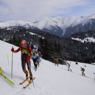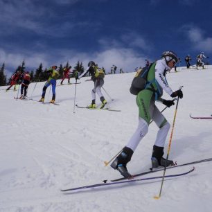 Jasné slunečné počasí ještě více podtrhovalo panující jarní podmínky v dolinách. Závodníci se proto museli hned ze startu poprat s téměř tříkilometrovým výběhem v botech s lyžemi na zádech, čímž se startovní pole pěkně protrhalo už na první vrcholové partii. Tady už favorité závodu Dominik s Jakubem měli několika minutový náskok na zbytek závodníků. Z prvního vrcholku Babek se sjíždělo volným terénem do lesního porostu.