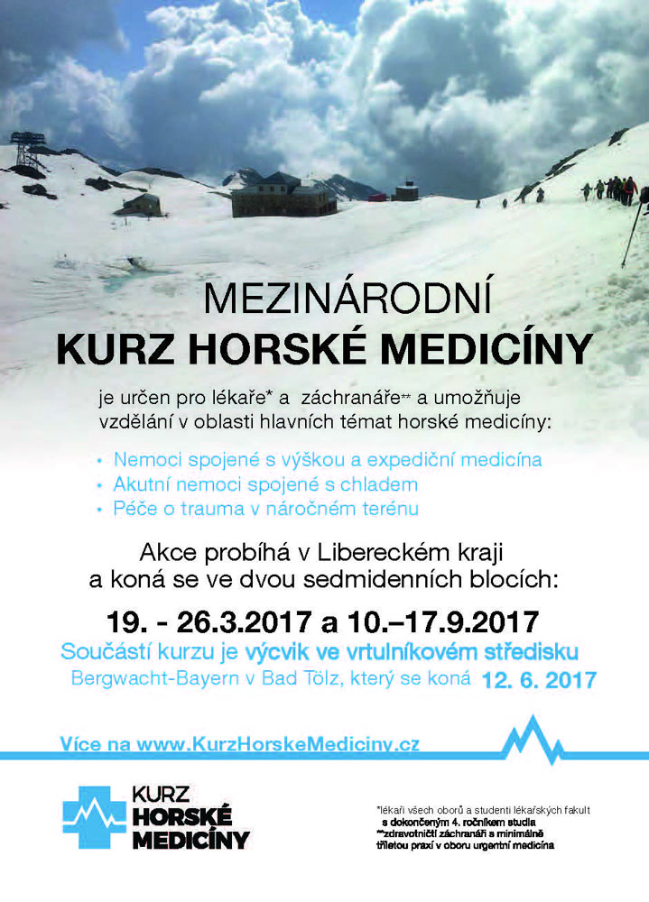 Po velmi úspěšném premiérovém ročníku Mezinárodního kurzu horské medicíny 2016 připravila hlavní organizátorka MUDr. Kristina Höschlová ve spolupráci s řadou tuzemských i zahraničních specialistů na rok 2017 druhý ročník, který bude opět rozčleněn do tří částí.
