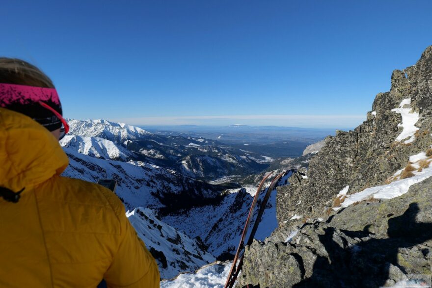 Výhled ze sedla ukazuje, že sněhová čára je hodně vysoko