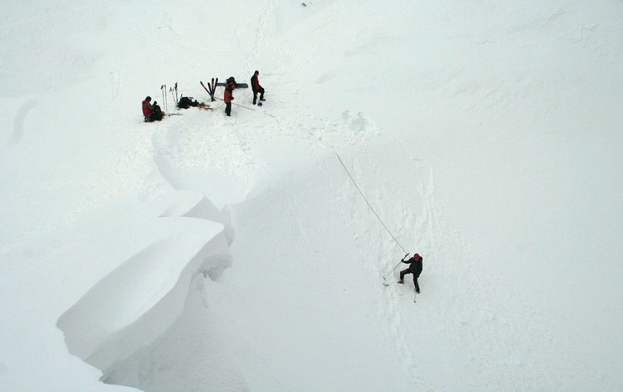 Galerie: Aktivní lavinový test – seříznutí svahu lyžemi