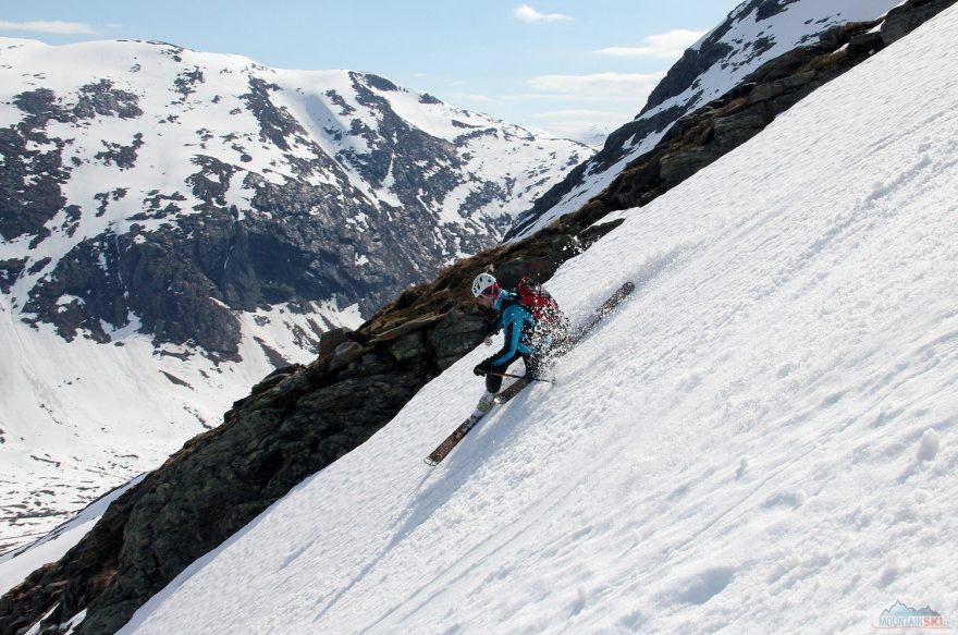 Strmě dolů na telemarkových lyžích z Antelstindenu