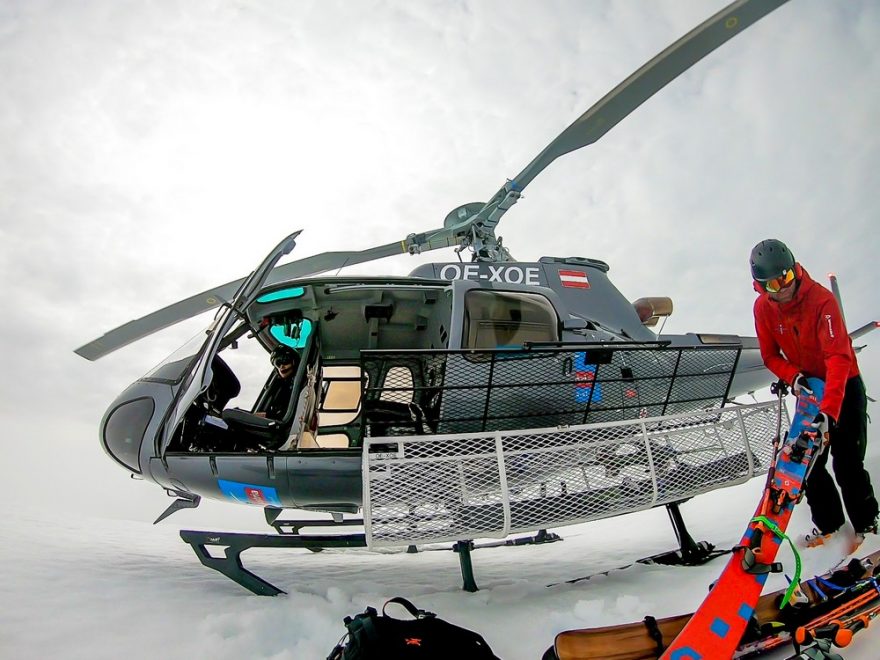 Před prvním sjezdem vyskládat lyže svázané skicukem