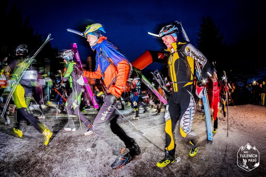 První úsek po startu se běží s lyžemi na batohu