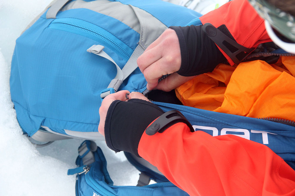 Zapínání krycího zipu lavinového batohu BCA 27 Speed