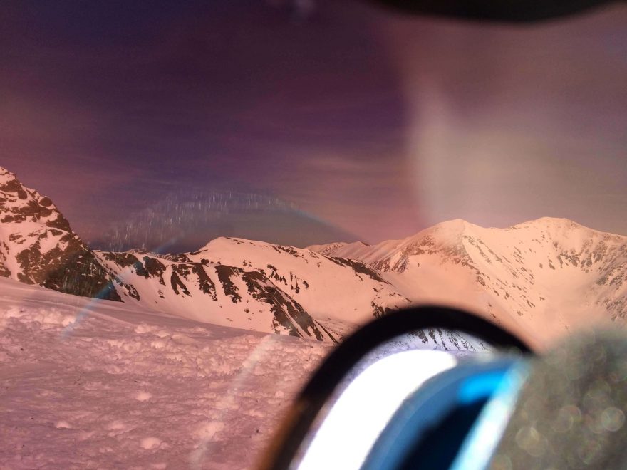 Pohled skrz zorník brýlí Julbo Aerospace. Redakce Světa outdooru