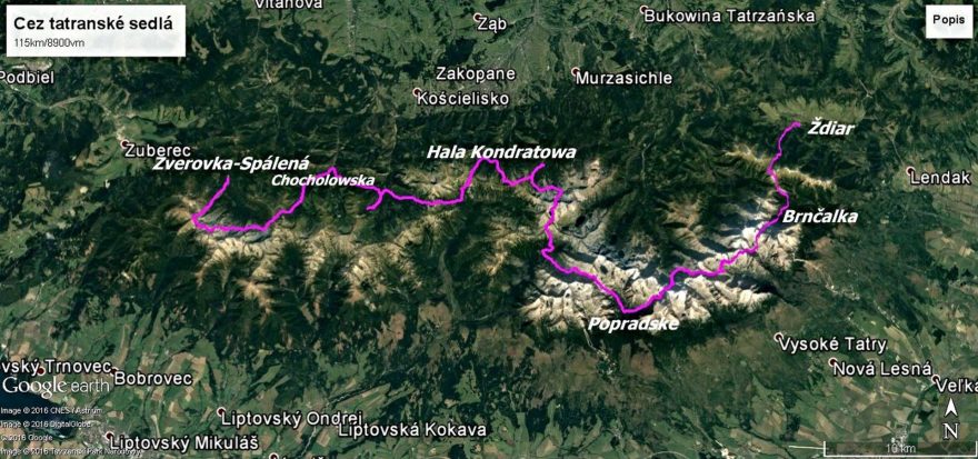 Cez tatranské sedlá – mapka