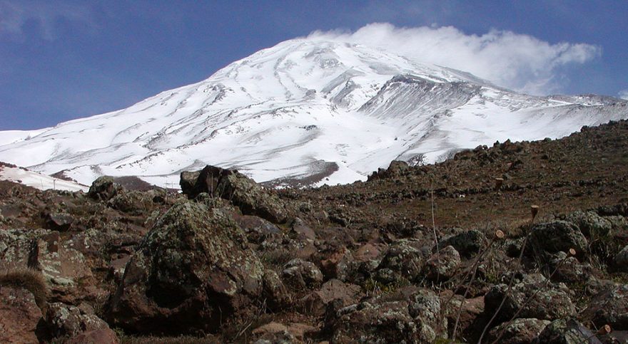 Výhled na jižní svahy Damavandu z výšky 3000 metrů