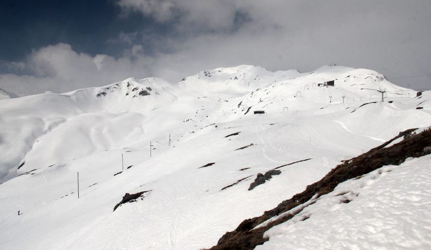 Horní část střediska Schatzalp s dominantním vrcholem Strela