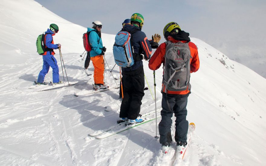 Příprava před začátkem freeridu z Jakobshornu do bočního údolí