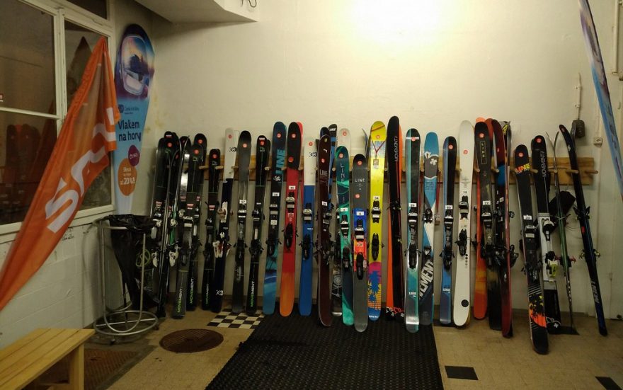 Část lyží Movement, G3 a LINE připravených pro účastníky
