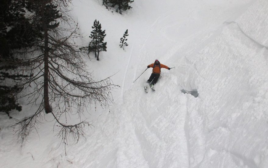 Vojta Dvořák v jednom z kotlů na Pische s krásnou dírou až do potoka