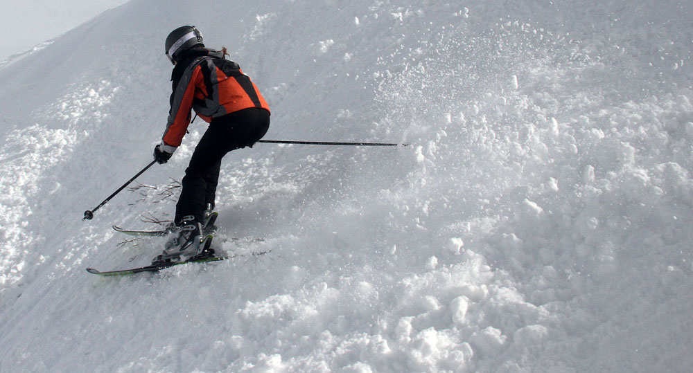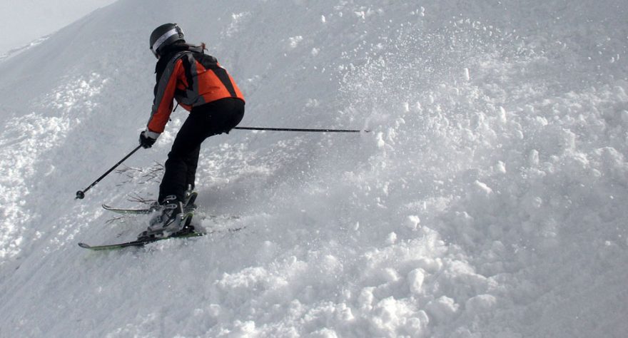 Výjezd z oblouku, obě lyže pěkně postavené na hrany