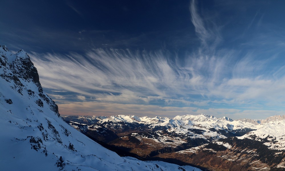 Hra mraků nad údolím, kde dole není po sněhu ani památky