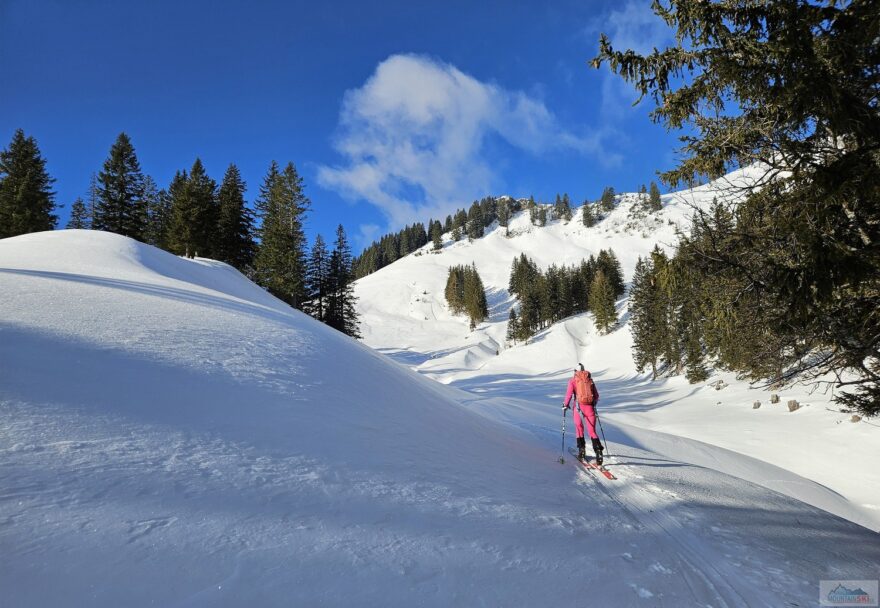 Řídké zalesnění a mezitím travnaté svahy, to jsou v tomto údolí Chiemgauské Alpy