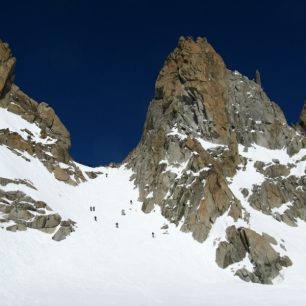 Rychle sjíždíme na ledovec Glacier d Argentiere