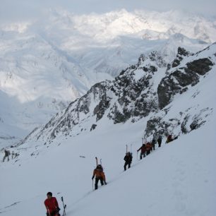 Pod sedlem Pigne de Arolla spojujeme se severní trasou, Haute Route