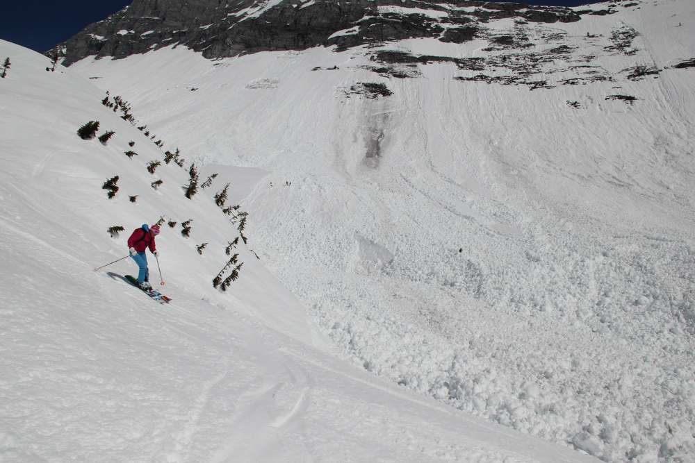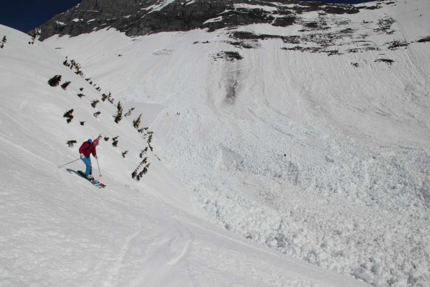 V jarním období se při heliski občas projíždí i kolem velkých samovolných lavin