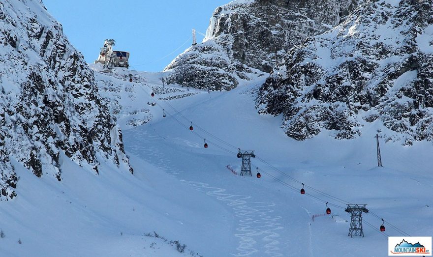 První tři ranní stopy na čermé sjezdovce č. 37 po předchozím sněžení