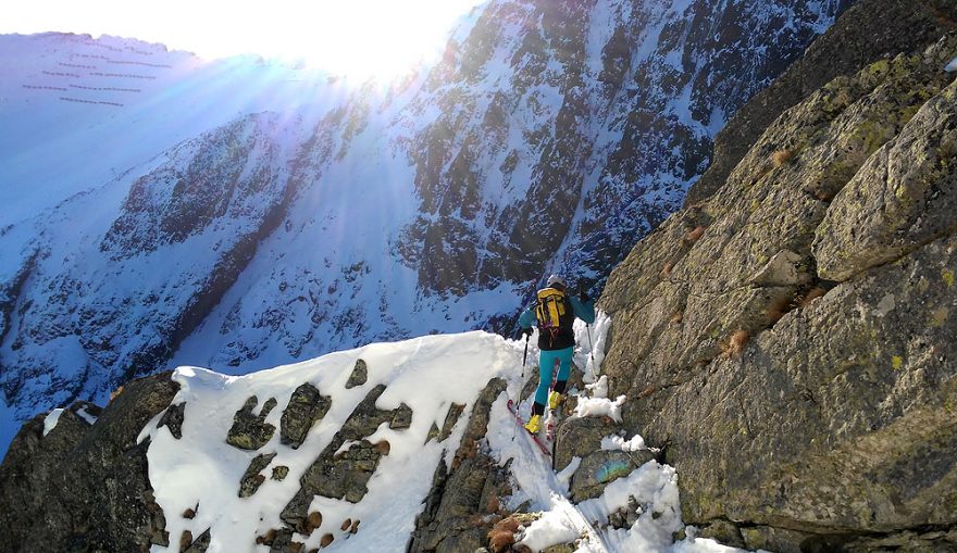 Prechod z pravého žľabu na rampu je chudobný na sneh