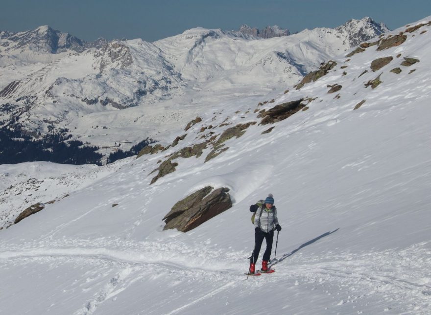S dvoudílnými holemi při výstupu na Pischahorn nad Davosem