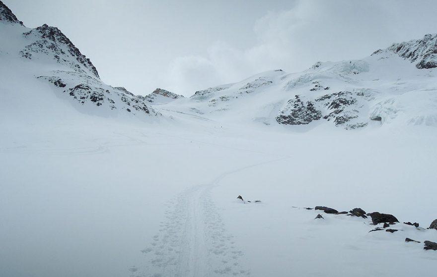 Stoupání od chaty Rifugio Città di Milano po ledovci Vedretta di Solda