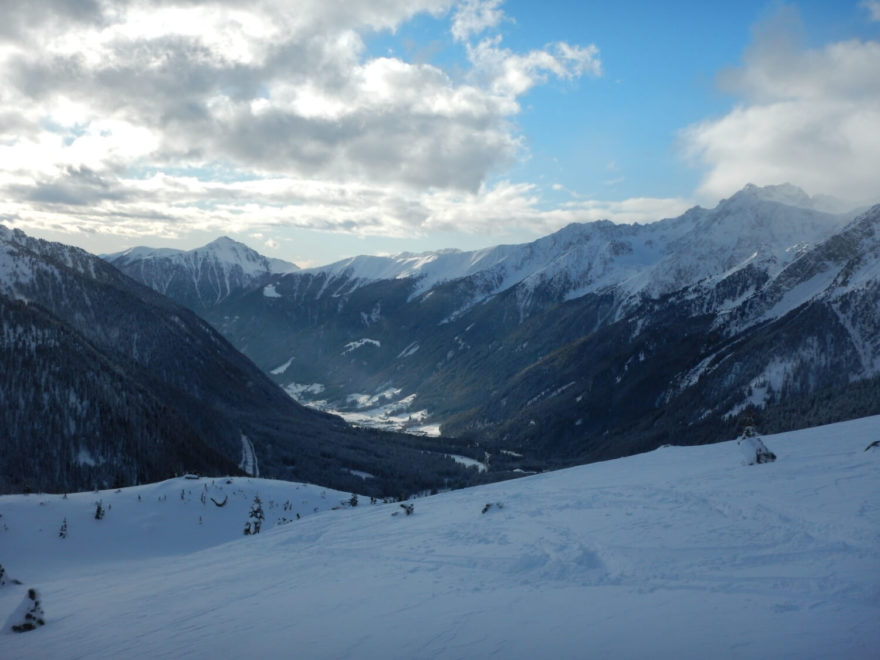 Výhledy na italské Alpy z hraničního hřebene s Rakouskem. Jižní Tyrolsko.