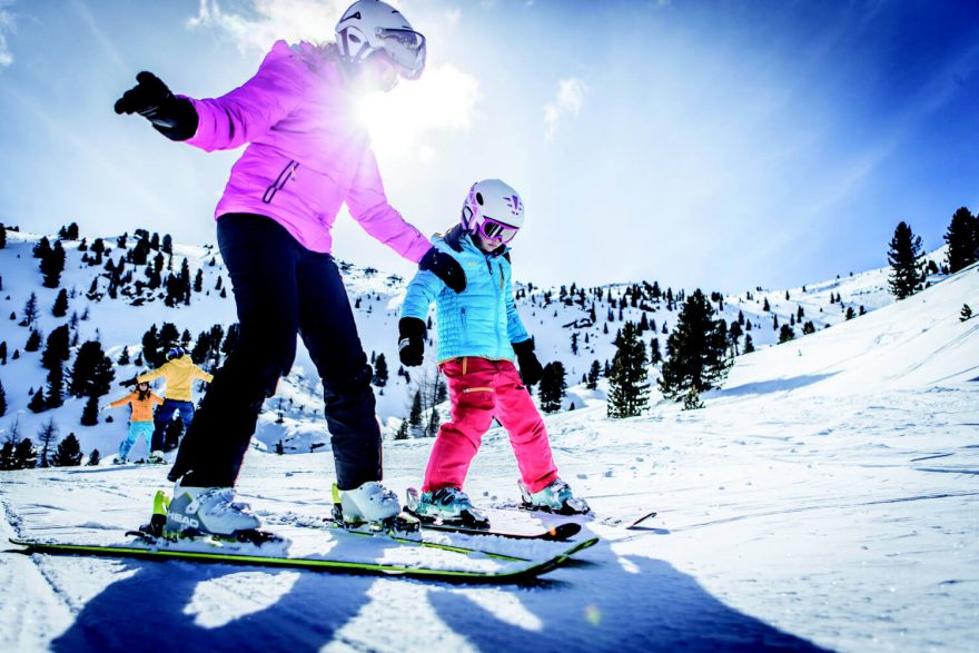 Lyžování pro celou rodinu. Ahrntal, Jižní Tyrolsko, Itálie
