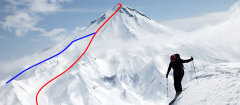 Kamčatka – vulkán Viljučinskij (2173 m) na skialpech a mačkách