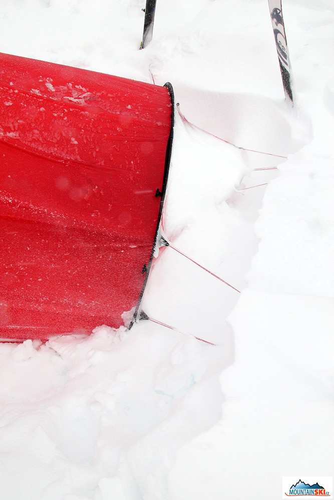 Když sněží vodorovně – už odkopaná předsíň stanu Hilleberg Nallo 2 GT