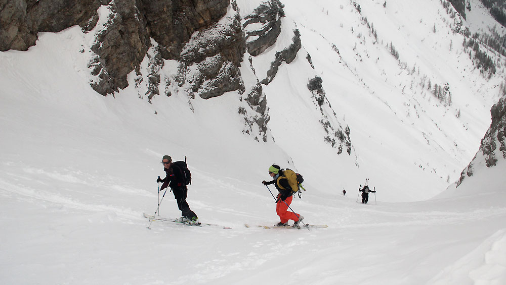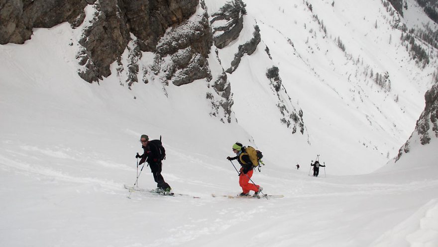 Lucie a Darja těsně pod Škrbinou v Grebenico, Pulec šlape pod nimi pěšky