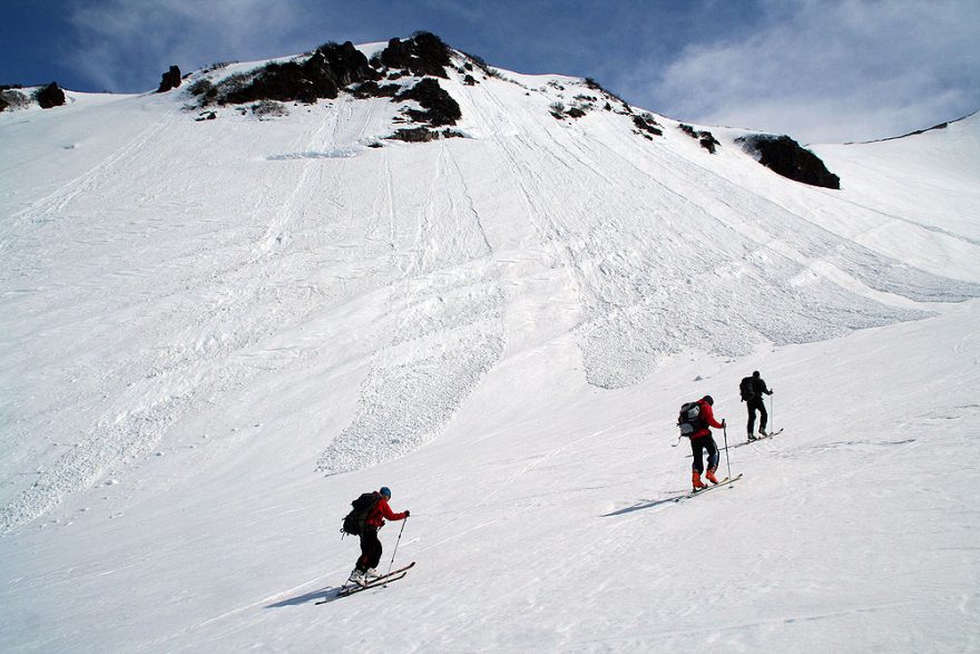 Samovolné splazy a laviny v dolní části vulkánu Viljučinskij na Kamčatce