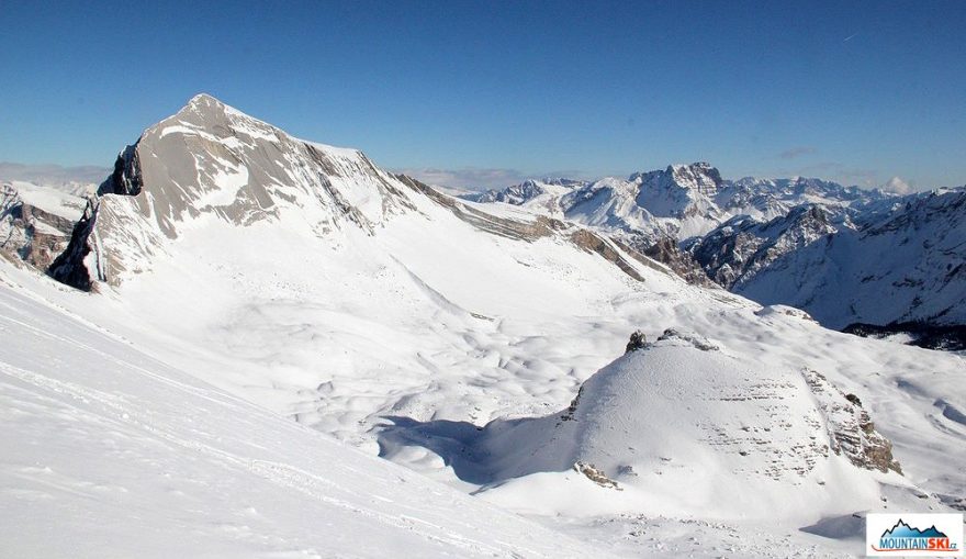 Klasické Dolomity, skalnaté vrcholy, spousta sněhu a krásné počasí
