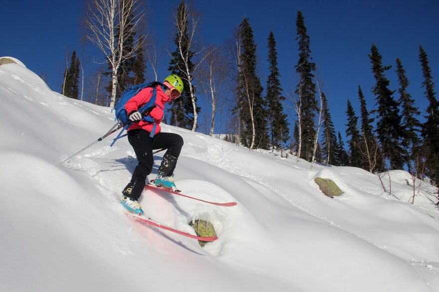 Ze sněhu občas trčí nějaké kameny a skalky