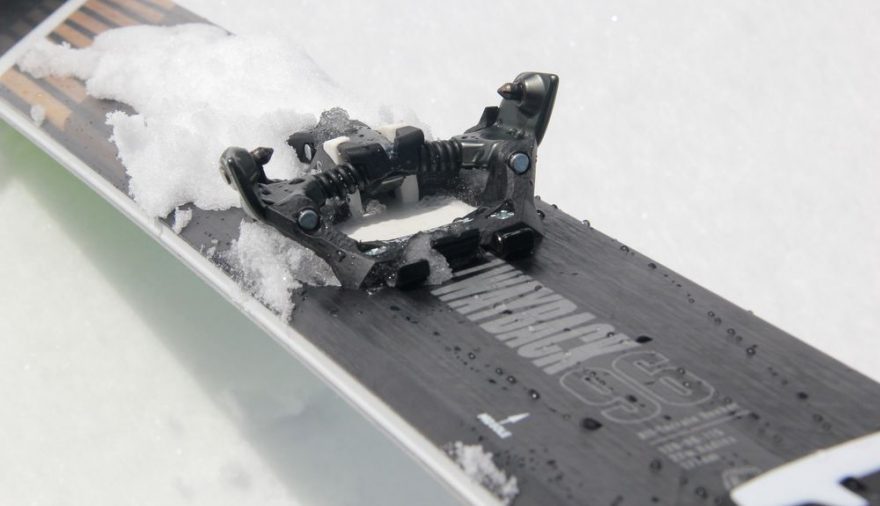 Detail špičky vázání Marker Alpinist s montážní středovou částí K2 Wayback 96