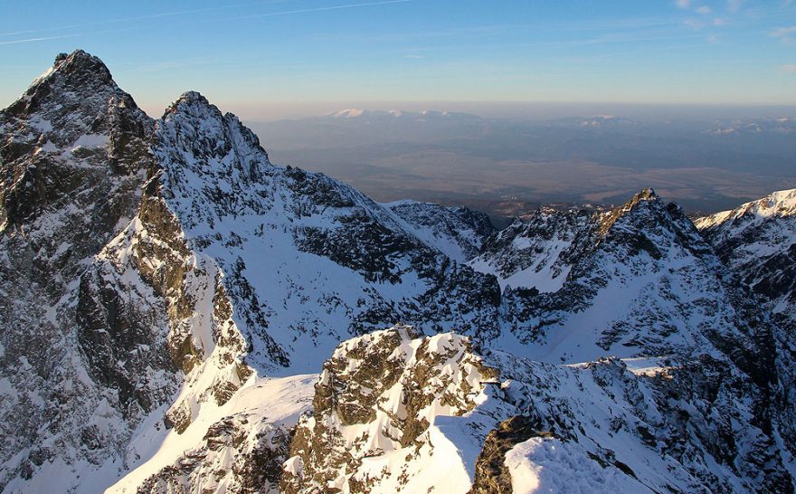 Pohled ze středních Rysů na Vysokou a Ťažký štít