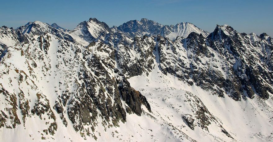 Pohled do Mlynické doliny – vlevo Štrbský štít a jeho západní sjezd