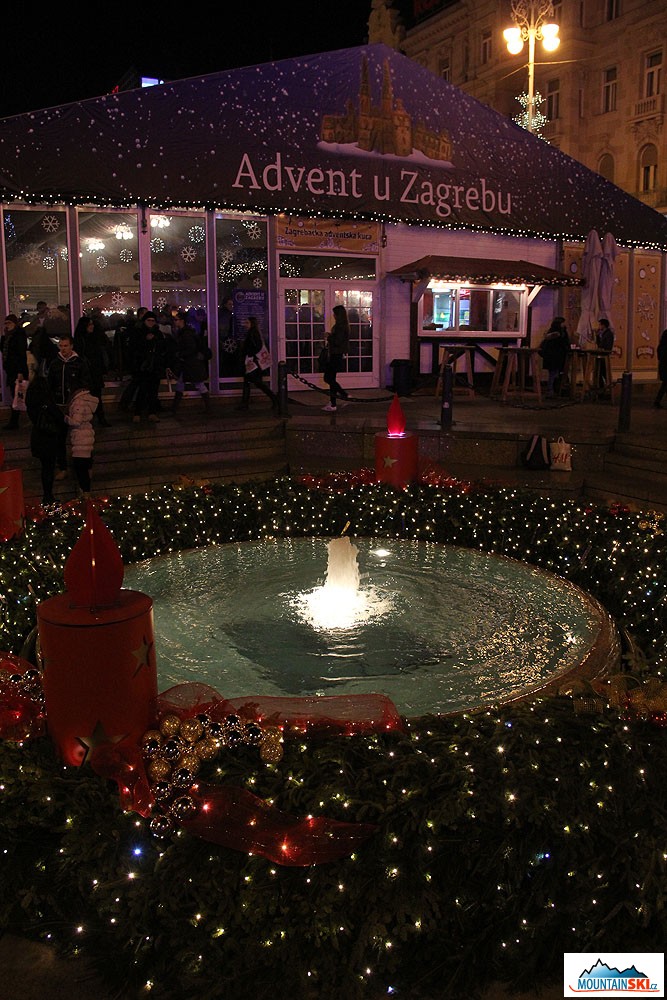 Advent u Zagrebu – prosinec a fontána funguje, jako kdyby bylo léto