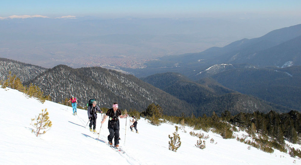 Galerie: Na skialpech do výšky 2500 metrů pod Tsamomorilski chal (2681 m) v bulharském pohoří Pirin u lyžařského střediska Bansko