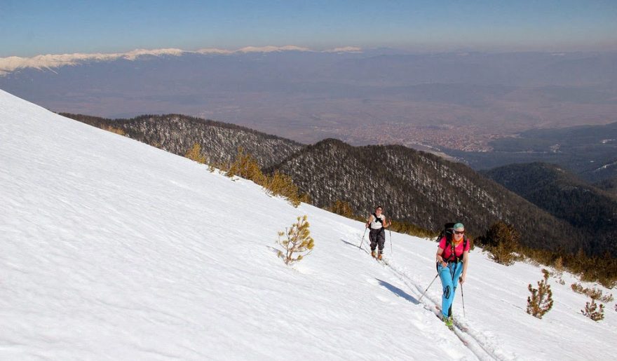 Galerie: Na skialpech do výšky 2500 metrů pod Tsamomorilski chal (2681 m) v bulharském pohoří Pirin u lyžařského střediska Bansko