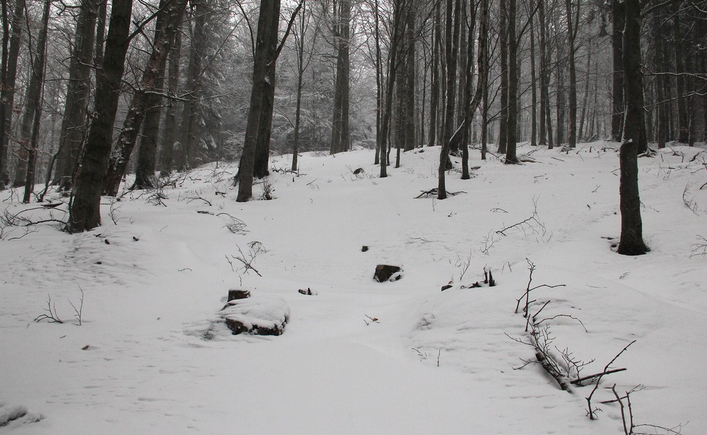 O kousek výše bylo sněhu už dost jak na výstup, tak i na sjezd