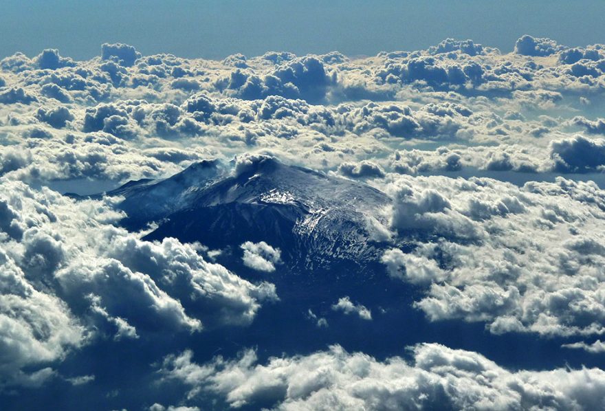 Etna z leteckého pohľadu – južná strana je bez snehu, sever ale vyzeral nádejne