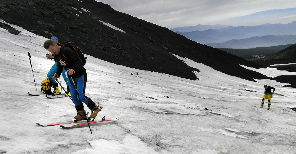 Galerie: Na skialpoch na Etnu (3350 m) po snehu aj sopečnom popole