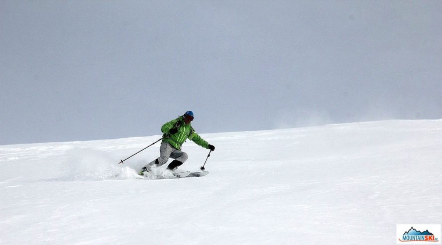 Sjezd z Col Bechei de Sora – svah měl dobrý sklon, jsou vidět celé skluznnice
