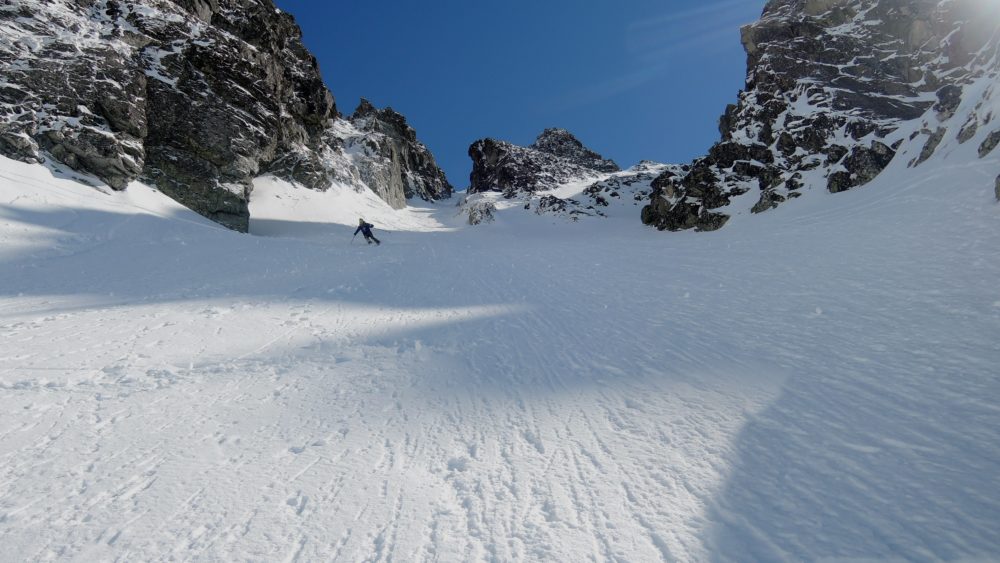 Karel Svoboda v nádherné jízdě prašanem ve žlabu ze Sedla nad Červeným žlabem – duben 201