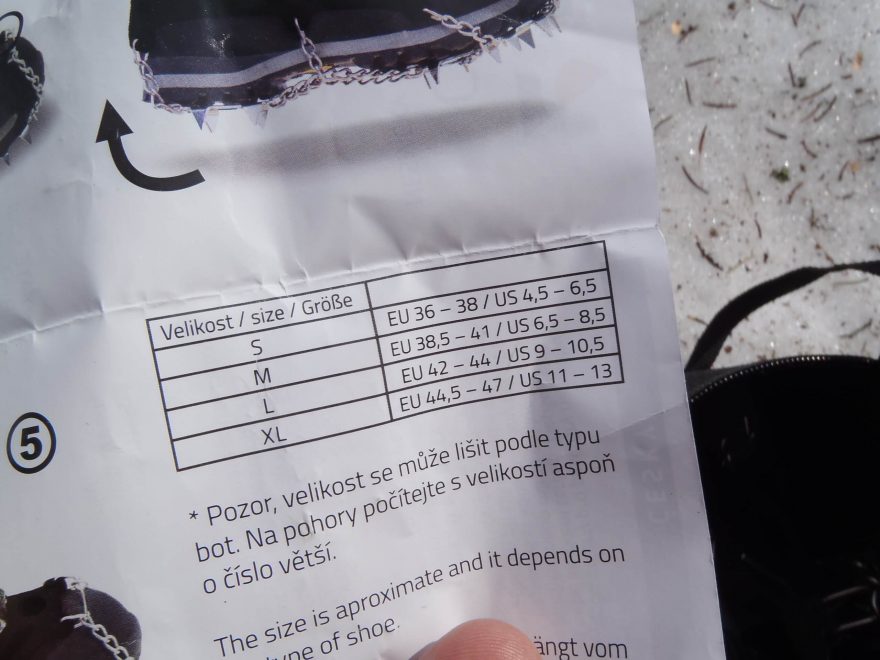 V českém návodu YATE Ice Spikes naleznete i velikostní tabulku. Vojtěch Dvořák