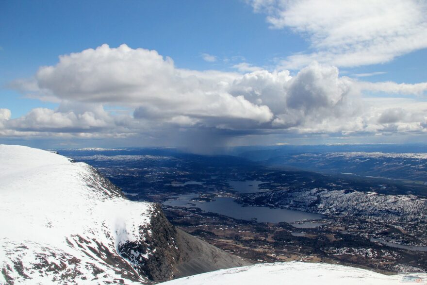 Výhled z Nibbi na jihovýchod s aktivním dešťovým mrakem