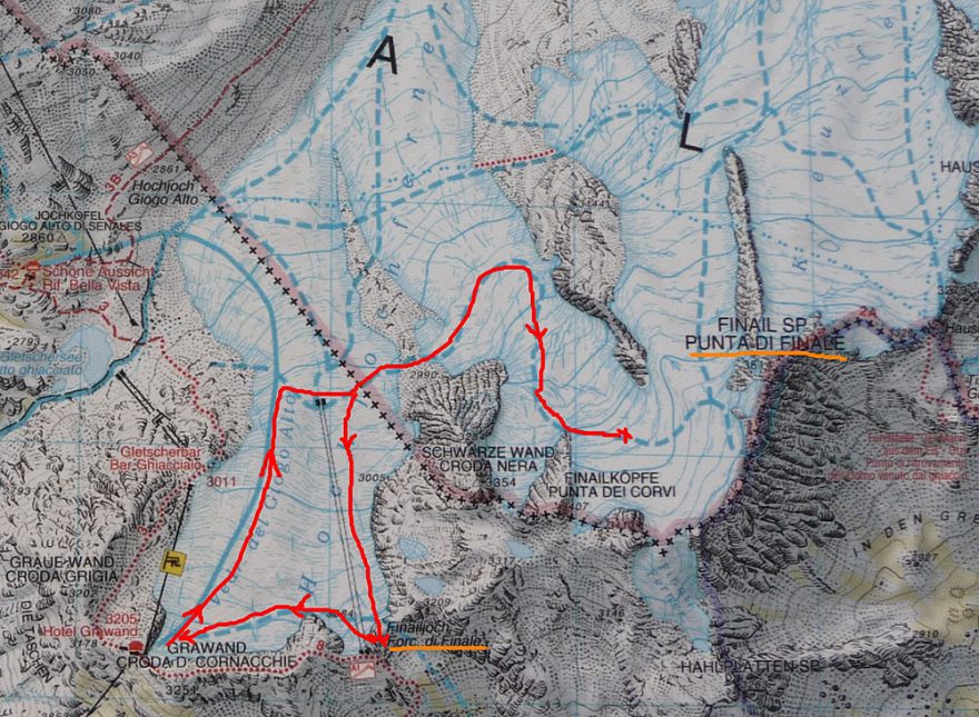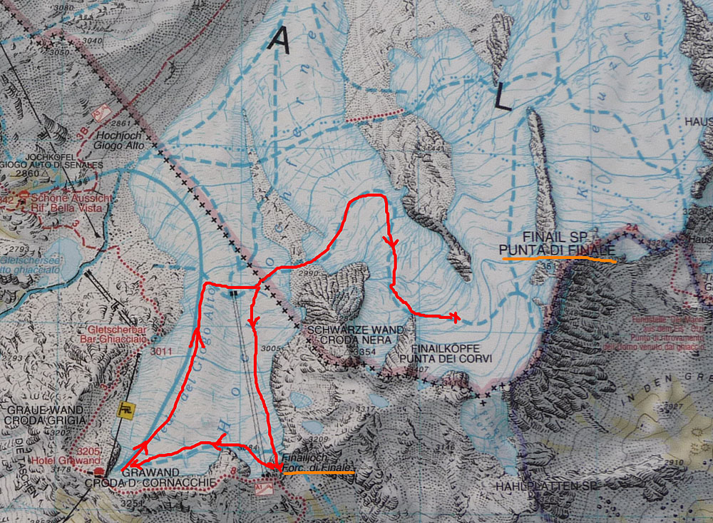 Trasa túry na ľadovci Hochjochferner
